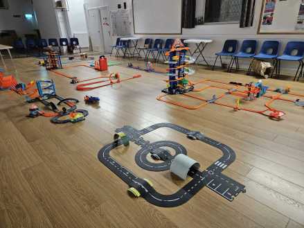 A big selection of cars and tracks to play with for 2 hours.